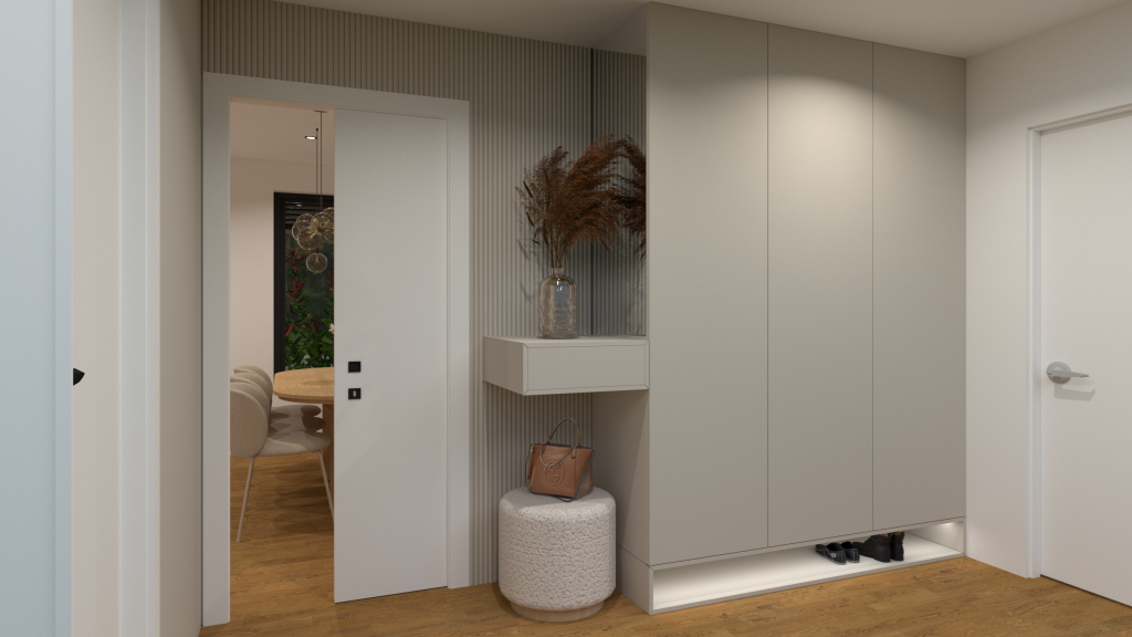 Lokacija: Domžale. SloveniaInvestitor: ZasebniLeto: 2025 – v tekuVelikost: 70 m2Vrsta: Zasebno stanovanjeInterier:MINT STUDIO d.o.o.